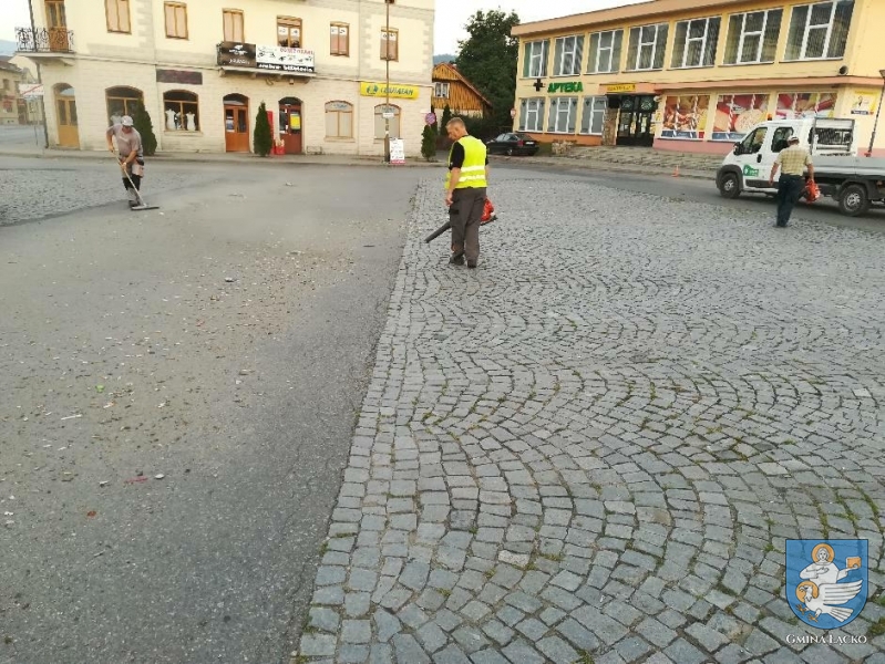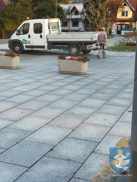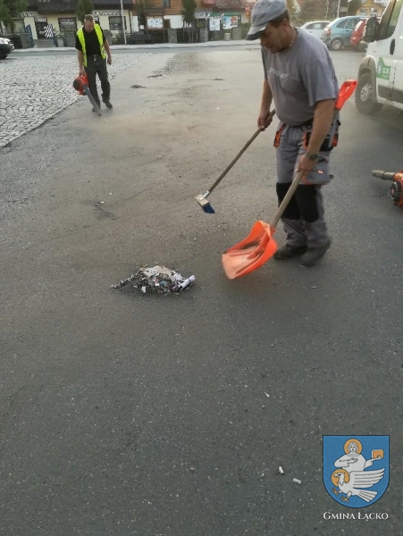 W dniu dzisiejszym kolejny raz pracownicy Zakładu Gospdoarki Komunalnej w Łącku od wczesnych godzin porannych porządkowali płytę rynku w Łącku oraz parkingi przyległe z zalegjących odpadów.